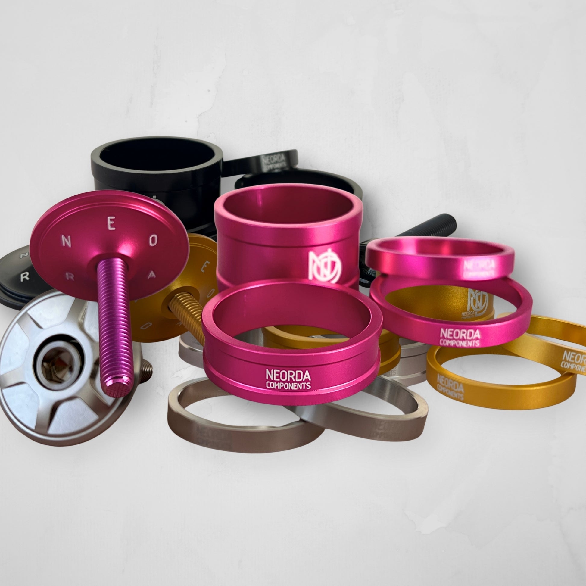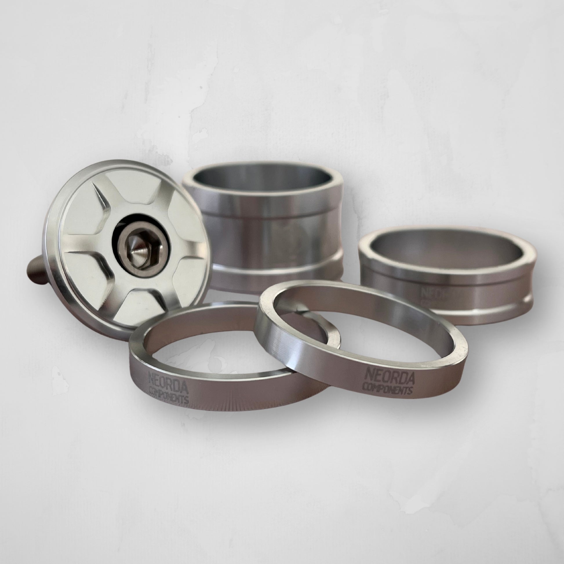 Neorda es la submarca de DpsBikes con la que se centran en hacer pequeños componentes premium hechos con mucho amor como estos espaciadores Babel super ligeros de aluminio en distintas medidas y una tapa en forma de diamante que le da ese toque.